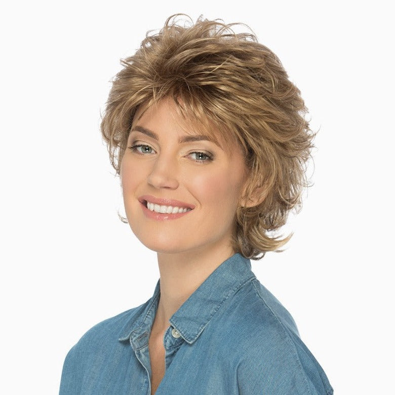 Shelby is a timeless choppy cut that exudes an ideal balance of voluminous shape and gentle curls, perfect for enhancing your natural beauty.