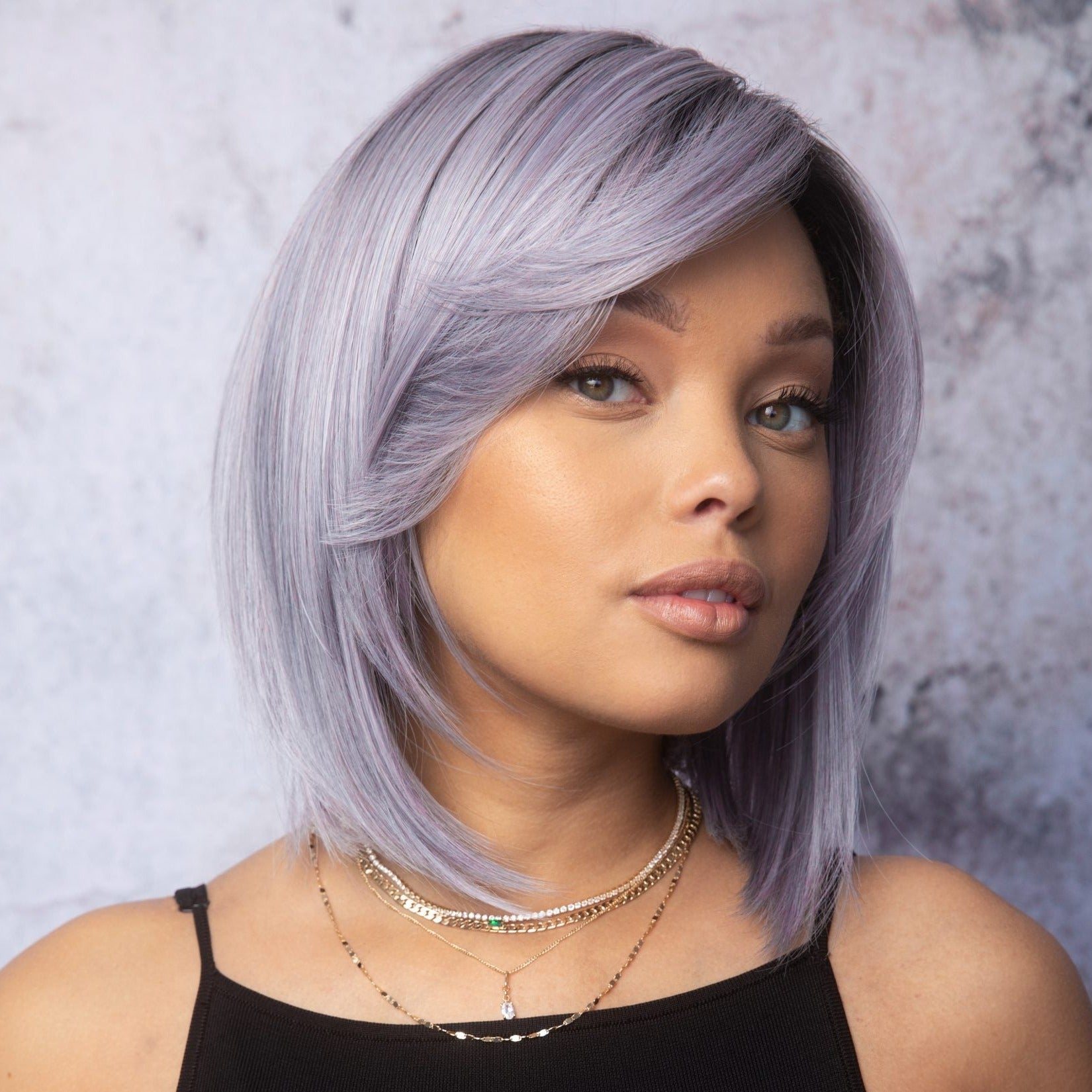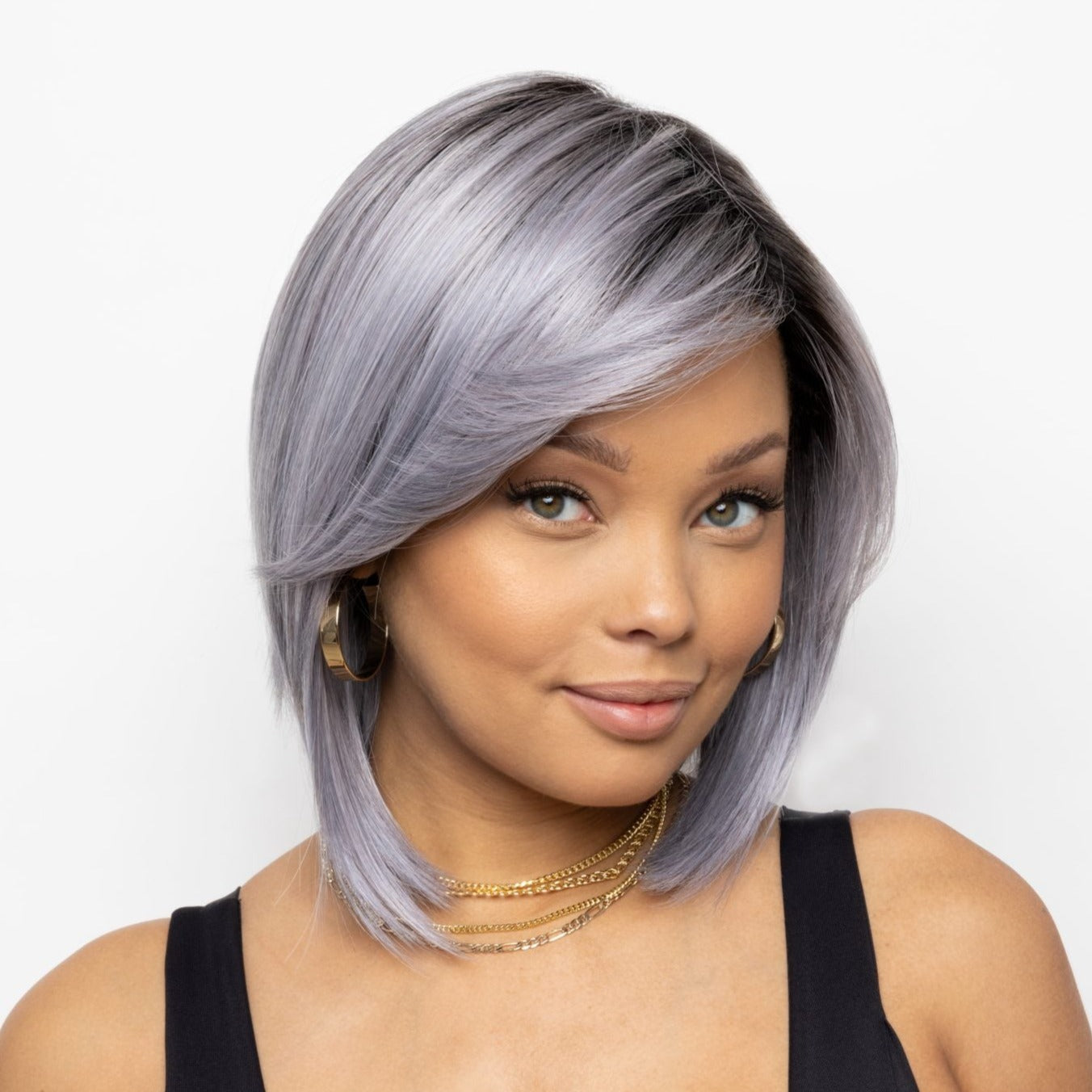 Silky Sleek from our Muse Collection is a short-length high heat wig. This Limited Edition ready to wear wig is a straight short length wig. This A-line bob with face framing layers and side swept fringe will be your daily popular style. Silky Sleek is machine made with adjustable tabs in the back nape area to allow a more comfortable fit. The result is a comfortable fit with a natural look that is both fashionable and easy to wear.?