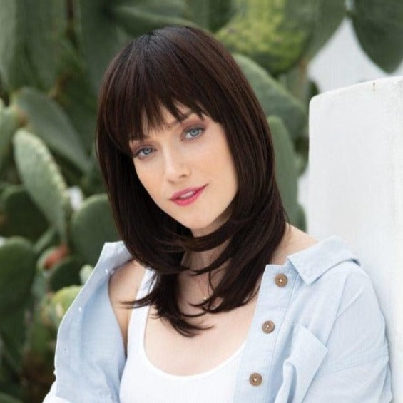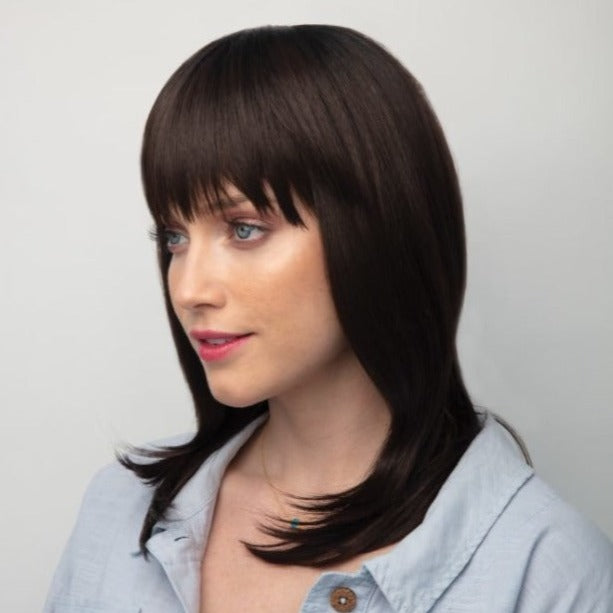Spellbound from The Orchid Collection is a mid-length high heat wig. This straight ready-to-wear wig is a captivating style with its long flowing layers and heavy fringe frame. Spellbound is machine made with adjustable tabs in the back nape area to allow a more comfortable fit. The result is a comfortable fit with a natural look that is both fashionable and easy to wear.