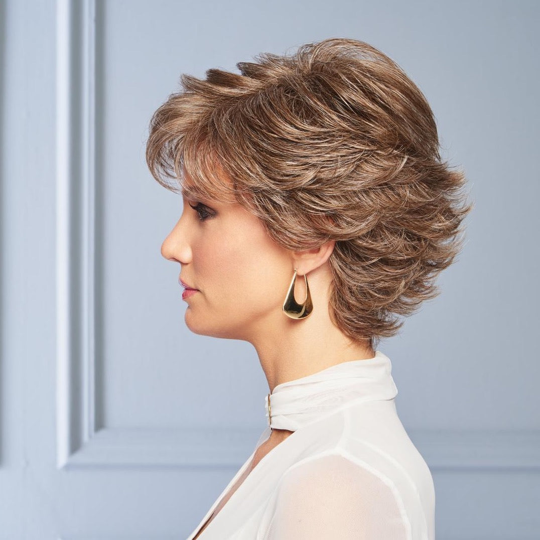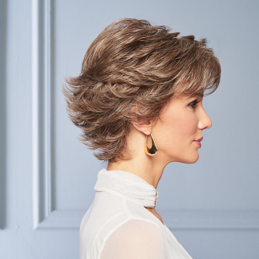 With its wispy texture and multitude of razor-tapered layers, this short silhouette has beautiful movement and lift. Gentle waves throughout flatter a variety of face shapes. Wear this versatile cut smooth and slick or fluff up the flipped ends.