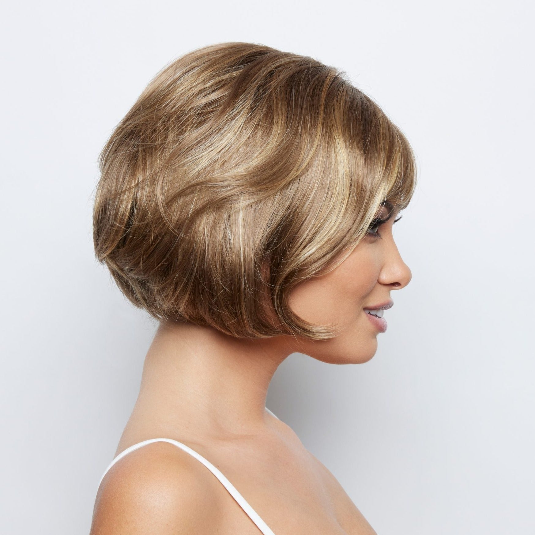 Sue from our Alexander Couture Collection is a short-length synthetic wig. This straight ready-to-wear wig is a voluminous bob with full fringe for a classic look. This trendy bob has a new lace and front partial monofilament cap. Its lace front will give you a natural look with the partial monofilament base.