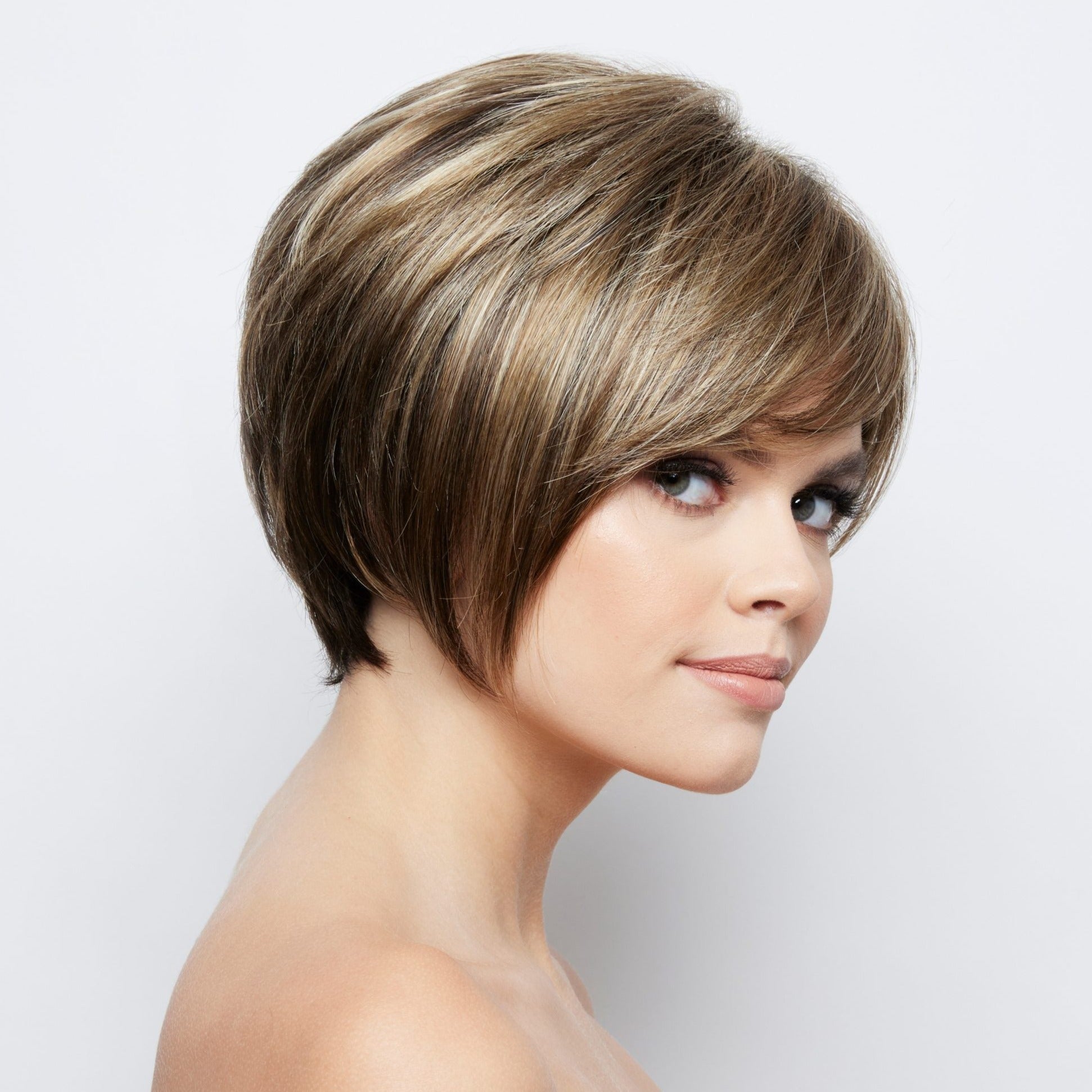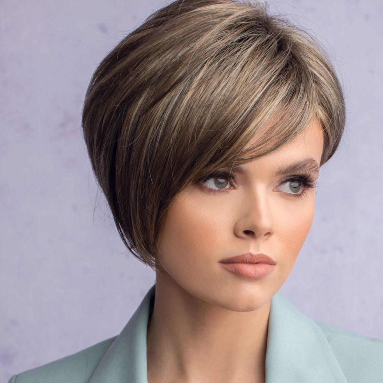 Susanne from our Alexander Couture Collection is a short-length synthetic wig. This straight ready-to-wear wig is a classic cut with short layers featuring side swept fringe and tapered nape.