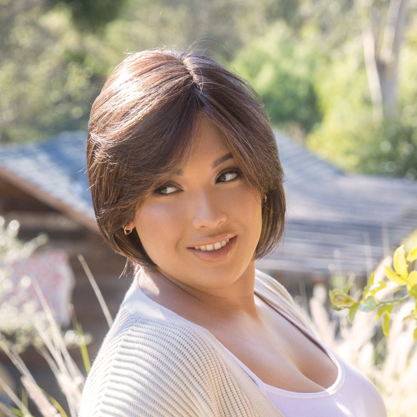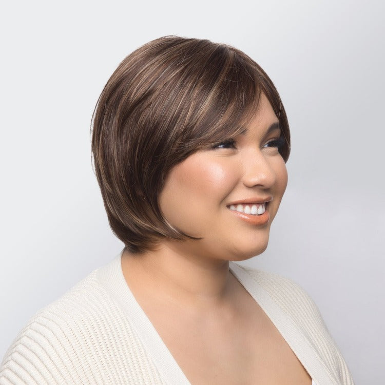 Tate from our Amore Collection is a short synthetic wig. This straight ready-to-wear wig is a short bob. Tate is a stunning bob with soft layers that create body and shape. Tate also has a soft fringe that will accentuate the eyes. Our Tate cap construction is Double Monofilament and lace front. The lace front is a hairline fusion technology with minimal lace front for a natural look. Its Double Monofilament cap construction is combined with calibrated machine wefting along the sides and back. Tate cap includes polyurethane tape tabs along the front and adjustable tabs in the back neck area, to allow for comfortable fit. The result is a comfortable fit with a natural look that is both fashionable and easy to wear.