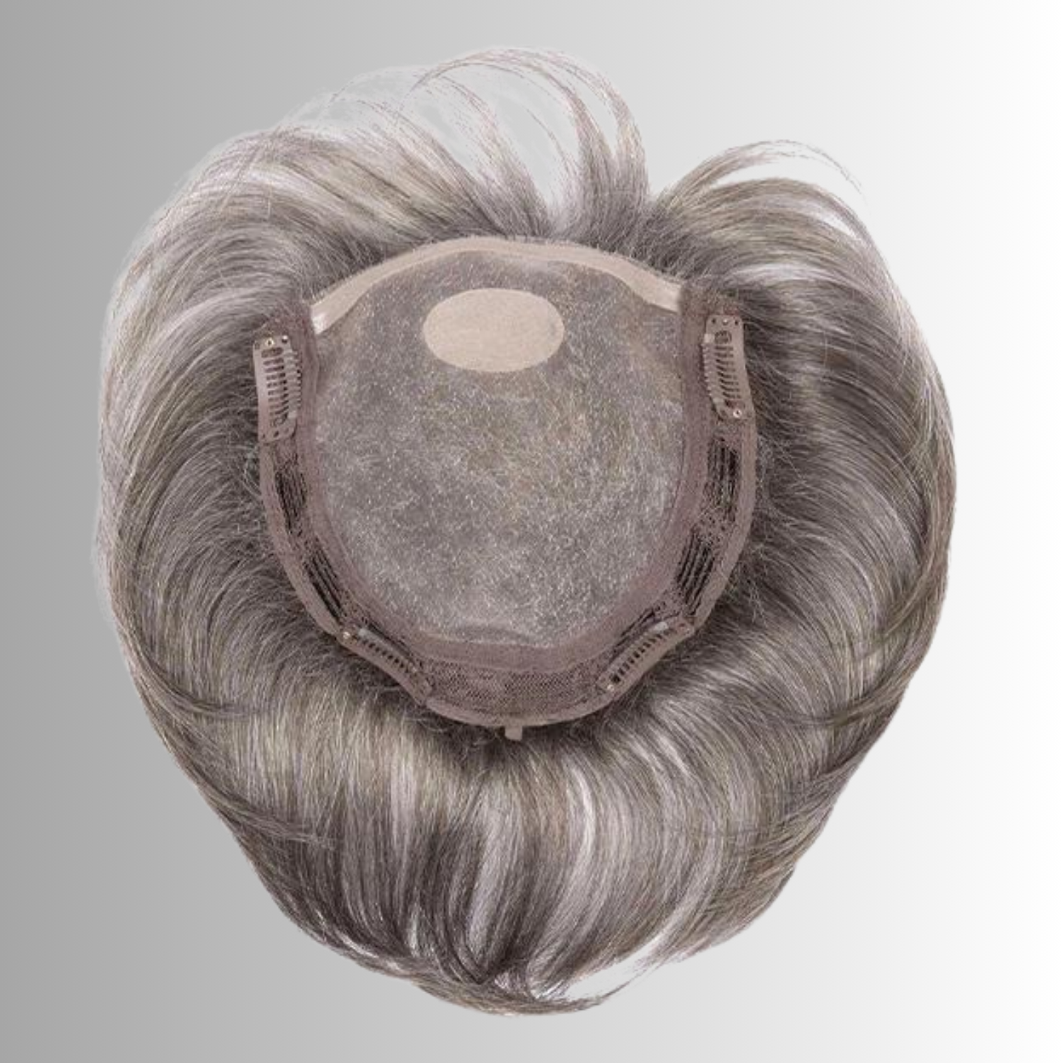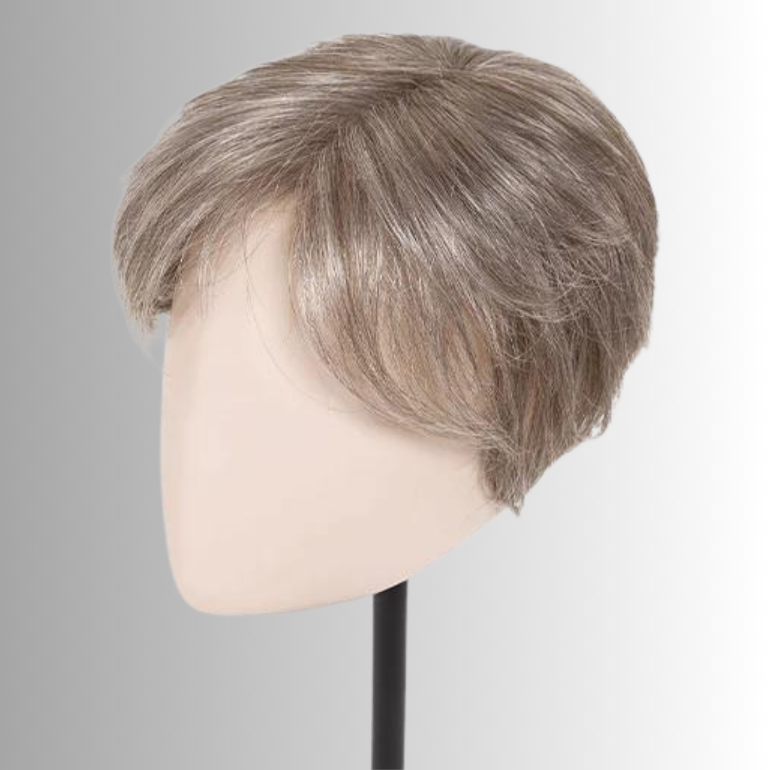 Top Mono by Ellen Wille is a wonderful classic top piece design with a longer layer on top for additional coverage. The Top Mono consists of 4.25" - 5.25" long hair on a monofilament wefted base that measures 6.3" x 6.3" with a polyurethane strip along the front that. There are four pressure sensitive clips that ensure for a secure fit. The Top Mono is made up of the finest premium synthetic fiber and blends flawlessly with your natural hair. Top Mono is part of the Ellen Wille Top Piece Collection.