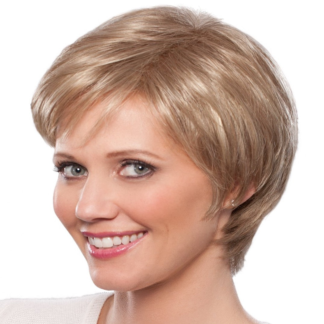 Tori is a Short Pixie style with soft wispy volume and a tapered nape.? Super light and easy to wear straight out of the box!