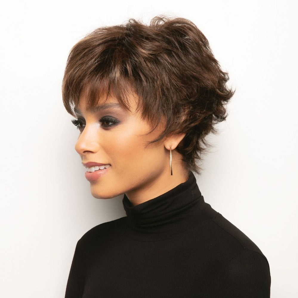 Tyler from our Rene of Paris Hi-Fashion Collection is a short-length synthetic wig. This straight ready-to-wear wig is a sophisticated style combined with tapered layers and flipped ends. Tyler is machine made with adjustable tabs in the back nape area to allow a more comfortable fit. The result is a comfortable fit with a natural look that is both fashionable and easy to wear.