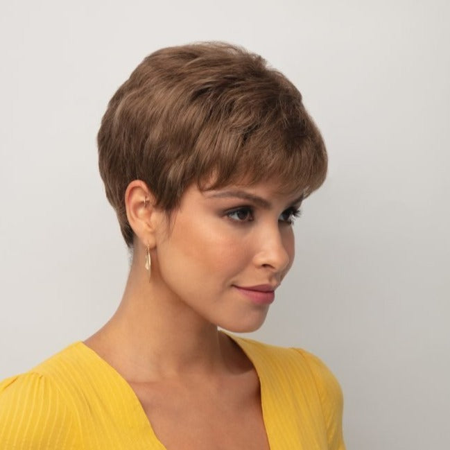 Valentina from The Orchid Collection is a short-length synthetic wig. This straight ready-to-wear wig is a sultry boy-cut with all over layers for light body and volume. Valentina is Monofilament top with adjustable tabs in the back nape area to allow a more comfortable fit. The Monofilament top gives you a light breathable base and a more realistic appearance to create a natural illusion which allows you to change the direction of the part on the wig. It provides the ultimate versatility and comfort.