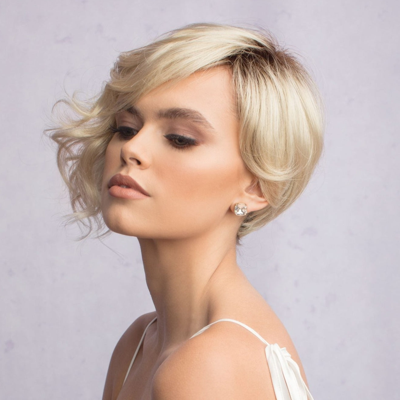 Vee from our Alexander Couture Collection is a short-length synthetic wig. This curly ready-to-wear wig is a runaway inspired asymmetric cut with bouncy curls.