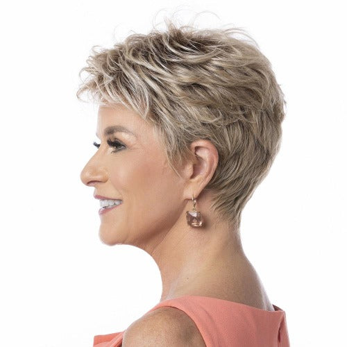 Loaded with texture and airy fringed bangs, the Toni Brattin Infinity Wig features a tight tailored neckline that easily creates a demure sophisticated look or a more casual tousled style. A specially designed cap can be easily adjusted for a custom and comfortable fit with the sizing tabs in the neckline.