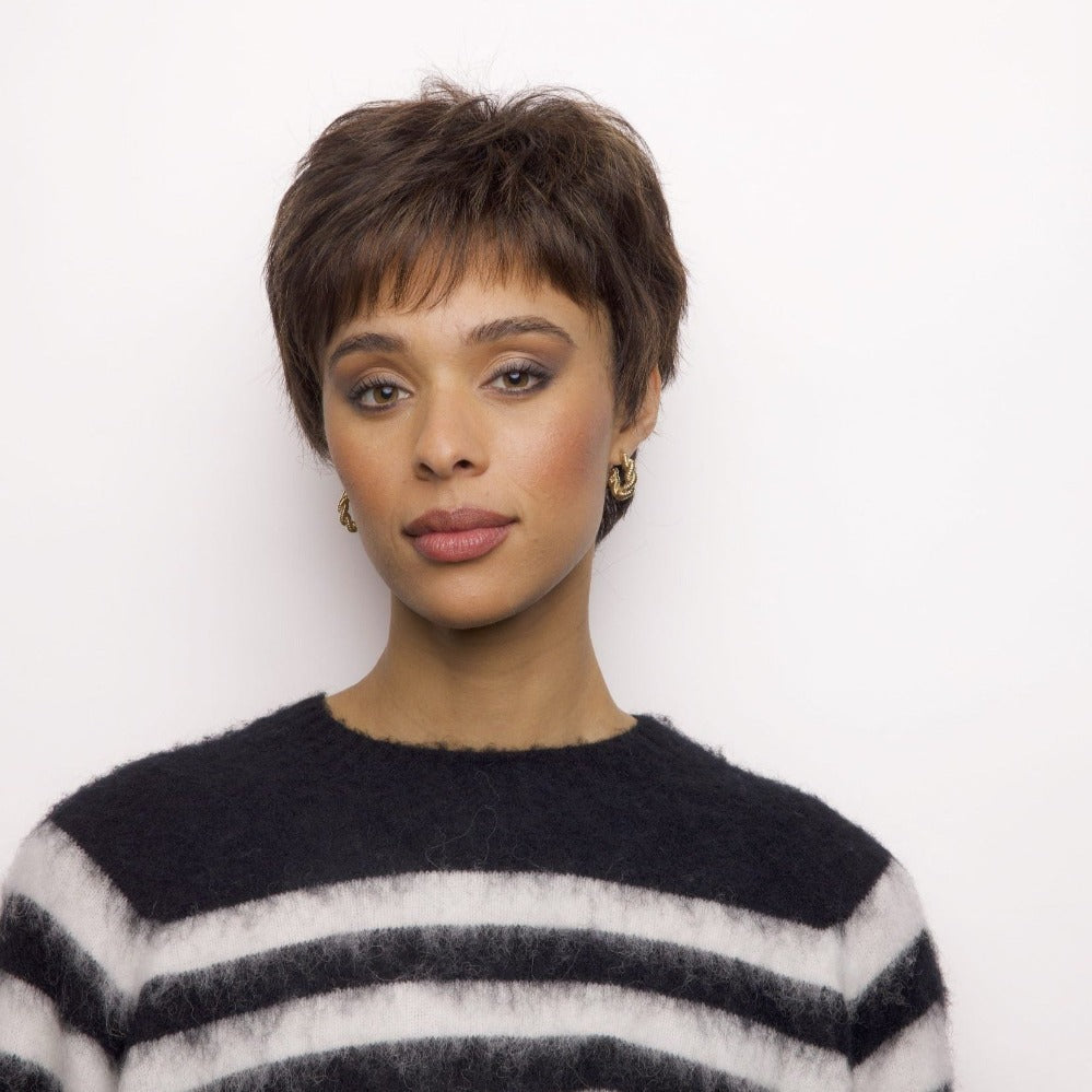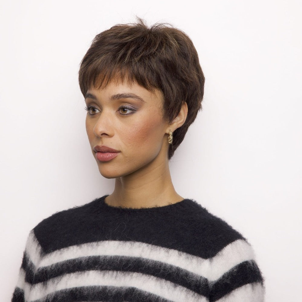 Zoe from our Rene of Paris Hi-Fashion Collection is a short-length synthetic wig. This straight ready-to-wear wig is a modern pixie enhanced by multiple layers and textures. Zoe is machine made with adjustable tabs in the back nape area to allow a more comfortable fit. The result is a comfortable fit with a natural look that is both fashionable and easy to wear.